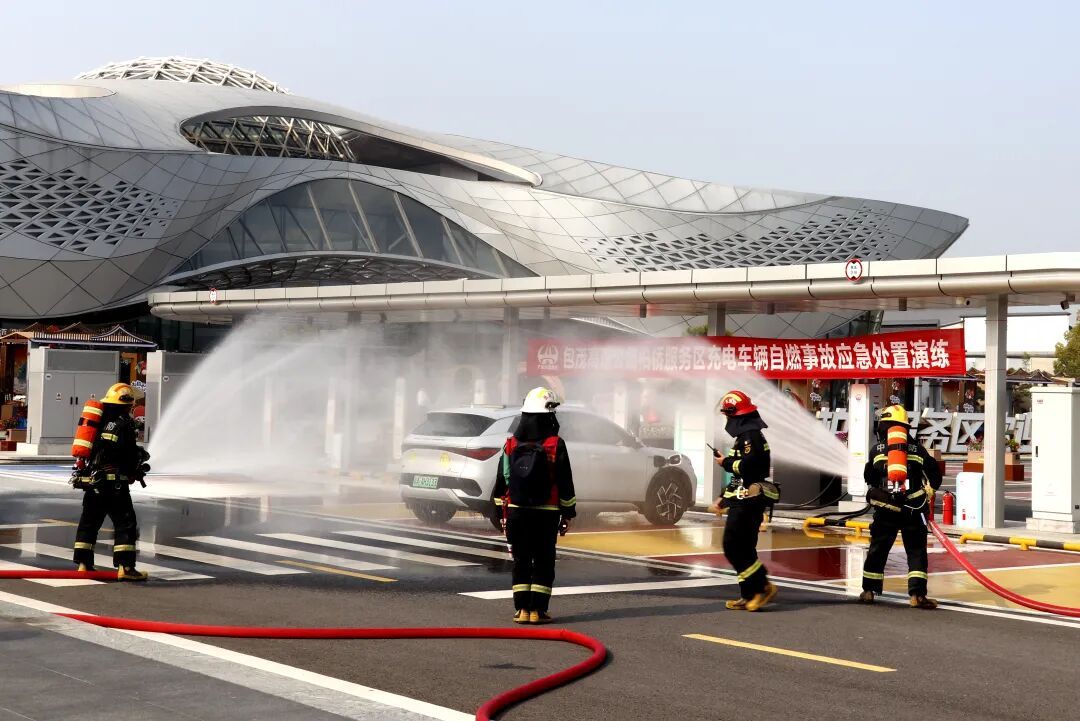 新能源汽车充电桩的普及,为公众绿色出行提供了便利,但在突发事件面前,必须时刻保持高度警惕。此次演练有效检验包茂高速一路多方应急联动机制响应速度、协同效能和实战能力,进一步完善服务区新能源汽车火灾应急预案,并筑牢了包茂高速消防安全管理“防火墙”。
