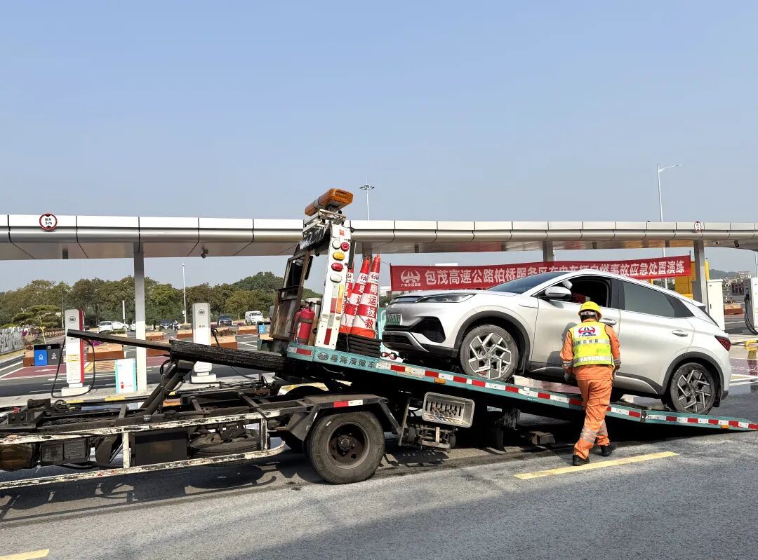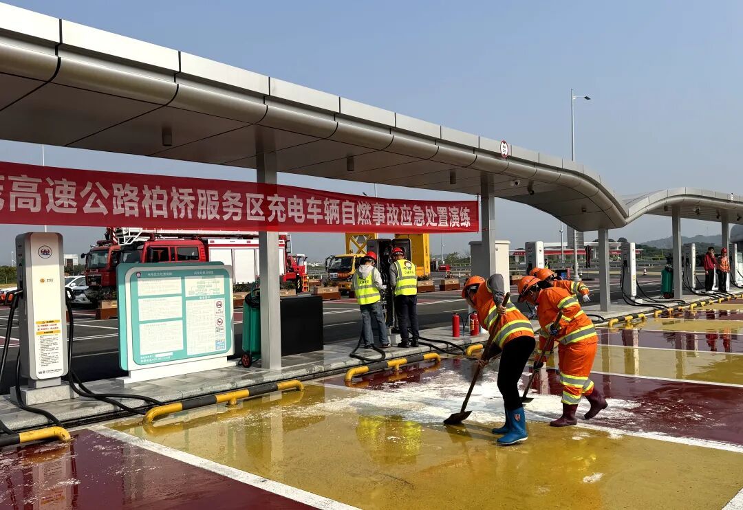 1月28日上午,广东交通集团所属包茂高速营运管理处联合茂名市公安交警、交通运输、消防部门,以及高速拯救、服务区运营和充电设施维护单位等,在柏桥服务区联合开展充电车辆突发事件综合应急演练,旨在通过实战化模拟,全面提升包茂高速(粤境段)一路多方应急联动机制春运期间的安全保畅效能。